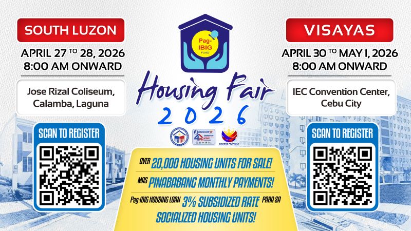 Pag-IBIG Fund is continuing its housing fair series in South Luzon and the Visayas, with the South Luzon fair set on April 27 and 28 at the Jose Rizal Coliseum in Calamba City, Laguna, and the Visayas fair scheduled on April 30 and May 1 at the IEC Convention Center Cebu. The two fairs will each showcase more than 20,000 housing units from partner developers and the agency’s acquired properties for sale, bringing more housing options closer to Filipino workers and their families.
