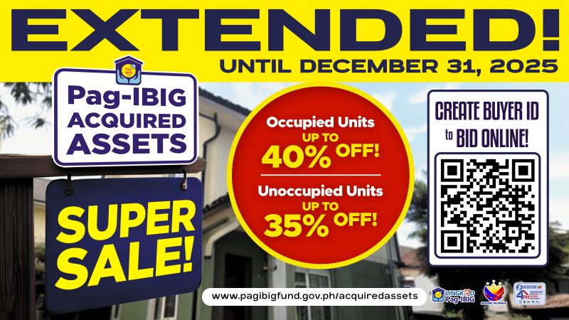 Pag-IBIG Fund has extended its Acquired Assets Super Sale until Dec. 31, giving homebuyers more time to purchase foreclosed properties at discounted prices, while adopting new rules to lower upfront costs and make it easier for more buyers to participate.